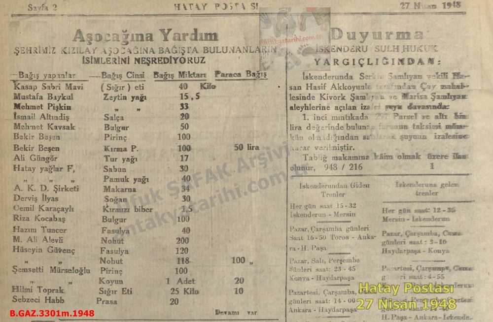 Antakya Aşocağı’na Yardım Nisan 1948