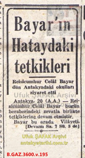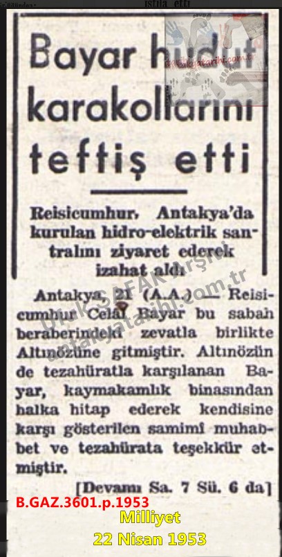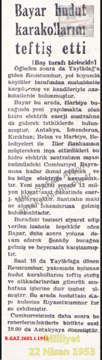Cumhurbaşkanı Celal Bayar’ın Hatay Ziyaretleri-Milliyet Nisan 1953/President Celal Bayar’s Visits to Hatay – Milliyet April 1953