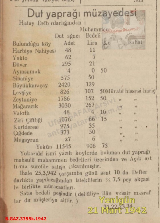 Dut Yaprağı Müzayedesi-Yenigün-21 Mart 1942