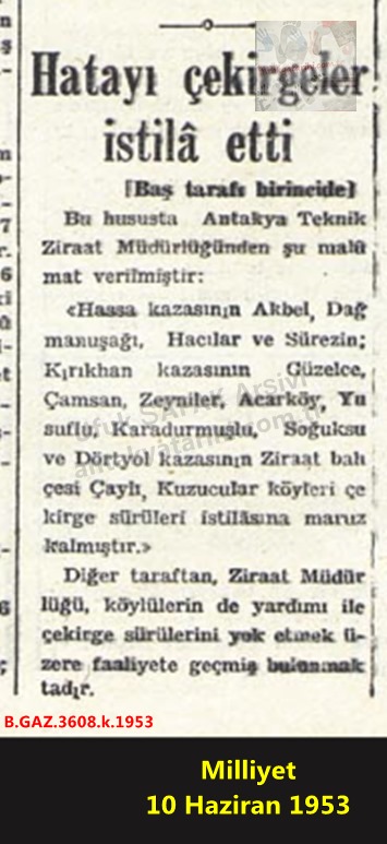 Hatay’ı Çekirgeler İstila Etti-Milliyet 10 Haziran 1953/Locusts Invaded Hatay – Milliyet, June 10, 1953