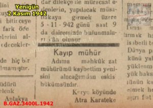 Hatay’ın ilk kadın muhtarı Atra KARATEKE Yenigün-2 Kasım 1942