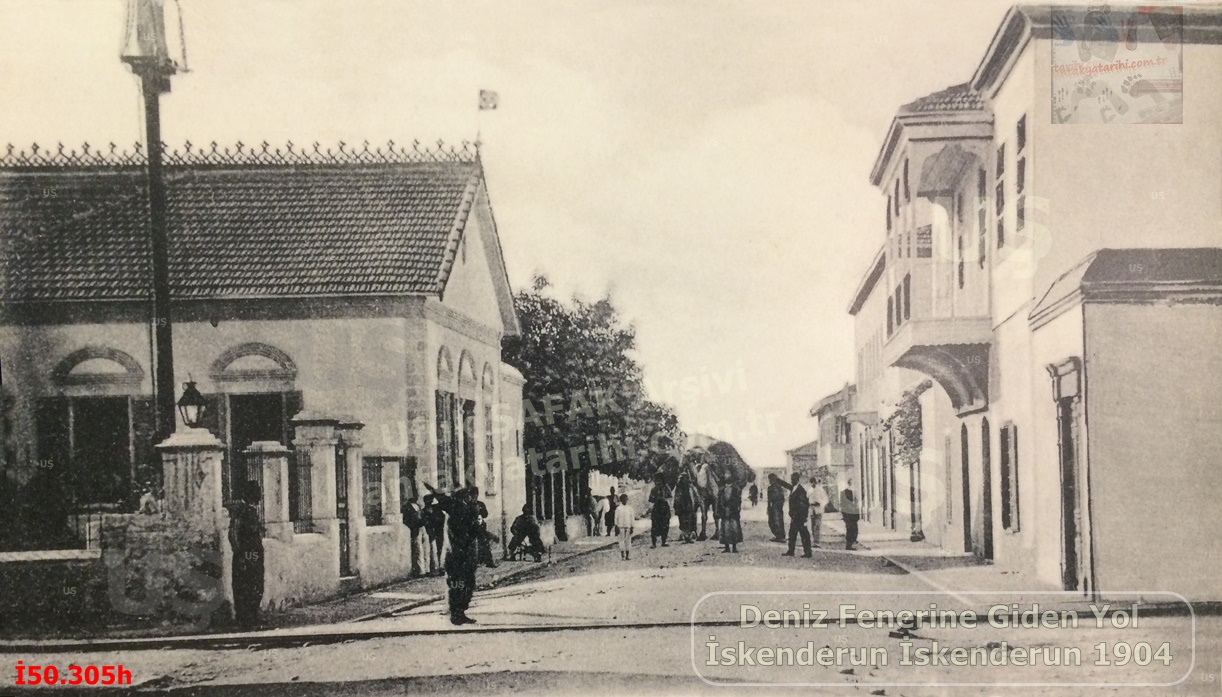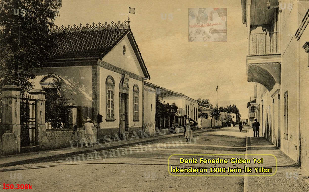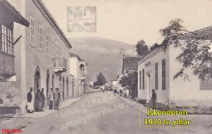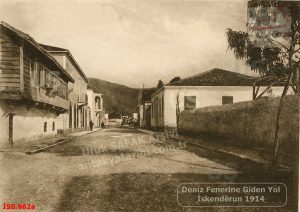 İskenderun 1910-1919 Bir Tarafı Gümrük Binası-Deniz Feneri’ne Diğer Tarafı Kışlaya Çıkan Yol