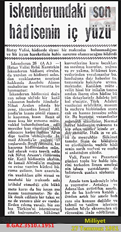 İskenderun’da Kız Kaçırma ve Cinayet-Milliyet 7 Temmuz 1951/Kidnapping and Murder in Iskenderun – Milliyet, July 7, 1951