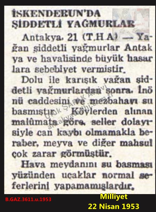 İskenderun’da Sel-Milliyet 22 Nisan 1953/Flood in Iskenderun – Milliyet April 22, 1953