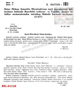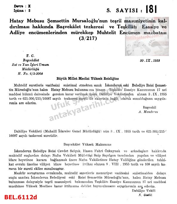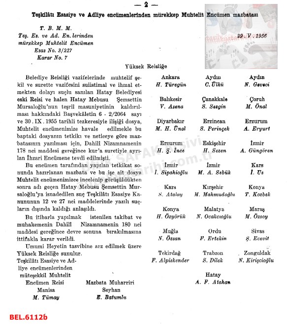 [1] Başvekâlet 30. IX. 1955 Zat ve Yazıişleri Umum Müdürlüğü H. No. 6/2-2064