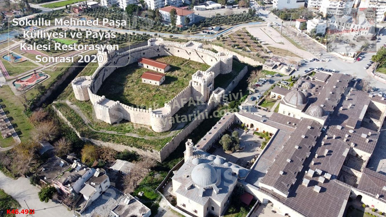 Kapsamlı tutulan külliyenin yanı sıra iki kale, iskele-gümrük, tersane, köprü, değirmenler, hizmet mekânları, dağdan su getirilmesi ve çevre düzenlemesiyle yaklaşık on yıl içerisinde yeni bir şehir kurulmuştur. Kitâbe, vakfiye kaydı ve arşiv malzemelerindeki bilgilerden Payas’ın imarına 1567 yılında başlandığı, çalışmaların 982’de (1574) büyük çapta tamamlandığı, 1580’lerin başında son halini aldığı anlaşılmaktadır. Önemli ölçüde Sokullu Mehmed Paşa’nın kişisel gayretiyle inşa edilen eserlerle birlikte bölgeye konar göçerler yerleştirilmiştir. Yerleşecek halka bir süre çeşitli vergilerden muaf tutulacağı belirtilmiş, karşılığında derbendci olması istenmiştir. Yerleşen hâne sayısı zaman içinde farklılık göstermekle beraber Evliya Çelebi hâne sayısının XVII. yüzyıl ortası için 850, yerleşimin nüfusunu ise 8000 olarak vermektedir. Arşiv bilgileri, mimari ve bezemedeki üslûp özelliklerine bakılarak külliyenin ve diğer yapıların tasarımını Mimar Sinan’ın yaptığı, gönderdiği mimar ve ustaların inşaatı gerçekleştirdiği söylenebilir.