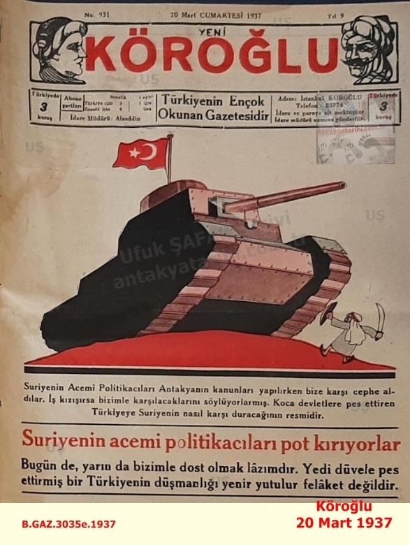 Suriye-Antakya Haberi-Köroğlu Gazetesi – 20 Mart 1937/Developments between Syria and Antakya-Köroğlu Newspaper, 20 March 1937